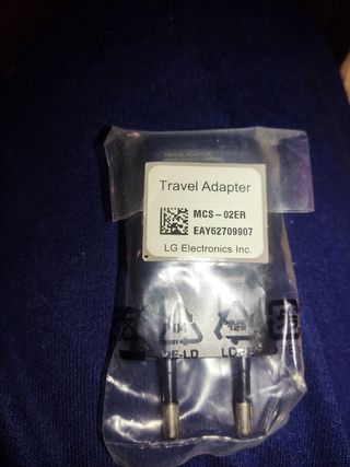 Teléfono móvil LG en color negro, incluye su cargador. - Cargador blanco.