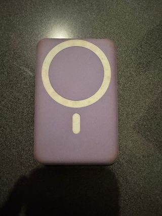 Batería externa para iPhone con tecnología MagSafe en color morado. - Diseño compacto y ligero. - Carga inalámbrica magnética.