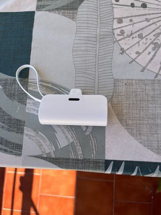 Batería portátil para móviles -5000mAh -Color blanco -Cargador de iPhone y tipo C -Pequeño, perfecto para llevar en bolso, riñonera o incluso bolsillo -Viene con caja y su cable de carga