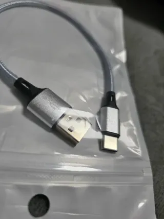 Cable de carga y datos con conector USB estándar y USB Tipo C. - Diseño trenzado para mayor durabilidad. - Conectores metálicos plateados.