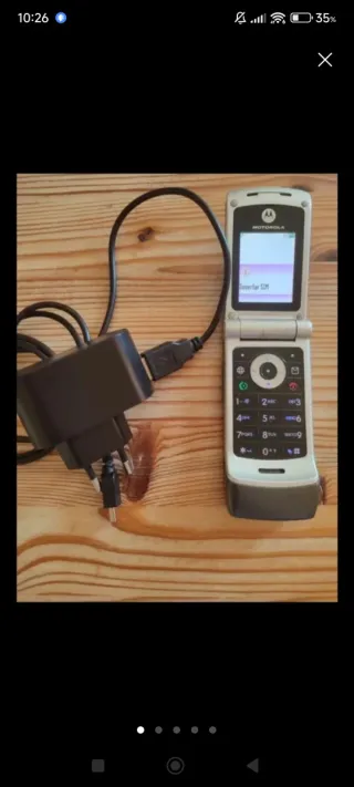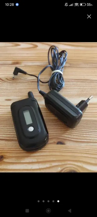 Teléfono móvil clásico en color negro. - Diseño plegable. - Pantalla exterior. - Incluye cargador. Otro Motorola en perfil