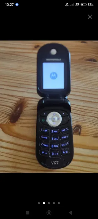 Teléfono móvil clásico de la marca Motorola. - Diseño compacto y ligero. - Teclado numérico QWERTY. - Pantalla a color.
