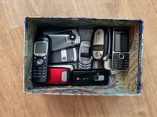 Siete móviles antiguos: - Microsoft Lumia 8 - Nokia 5320 XpressMusic 10 - Nokia 6101 5 - Motorola Pebl 10 - Motorola V525 de Vodafone - Nokia N95 30 - Samsung Galaxy Ace 5 - Batería BL 4B de Nokia Algunos funcionaban, otros no. Los que estaban mejor creo que eran el Nokia N95 y los plegables, pero no aseguro nada. Se venden como estén. Negociable