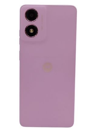 Caja original del Motorola Moto E15. 2 + 64gb - Diseño en color fresh lavander - Logo de Motorola visible en la parte inferior.