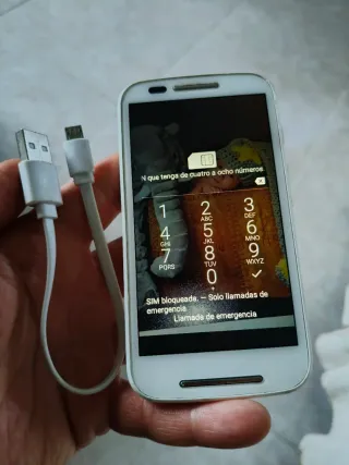 Teléfono móvil Motorola Moto E en color blanco. Incluye cable de carga. Poco uso funciona perfectamente y la batería también. Pantalla sin rallones. - Pantalla táctil. - Botones de navegación en pantalla.