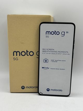 Teléfono móvil Motorola Moto G35 5G, completamente precintado y sin abrir. - Capacidad de almacenamiento de 128GB. - Conectividad 5G. - Modelo Moto G35 de Motorola. - Libre para todas las operadoras - Modelo modelo XT2433-5 de 128 GB. El precio de uno de segunda mano es de 150€