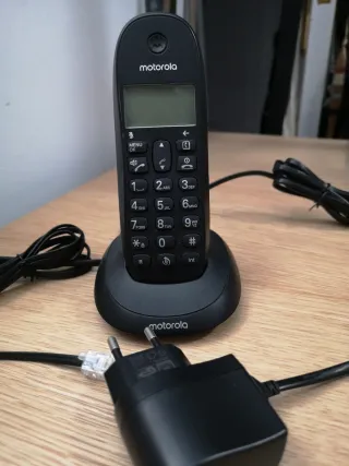 Teléfono inalámbrico Motorola en color negro. Un dispositivo práctico para el hogar. 2 unidades . Se venden por separado a 10 € - Diseño ergonómico. - Teclado numérico completo. - Pantalla LCD.