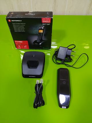 Teléfono fijo inalámbrico Motorola Startac S1201. Con sólo dos semanas de uso. En perfecto estado. Se utiliza con pilas recargables tipo AAA (No incluidas). Incluye, Base de carga, Cable de cargador. Cable conexión de línea. Listo para usarse.