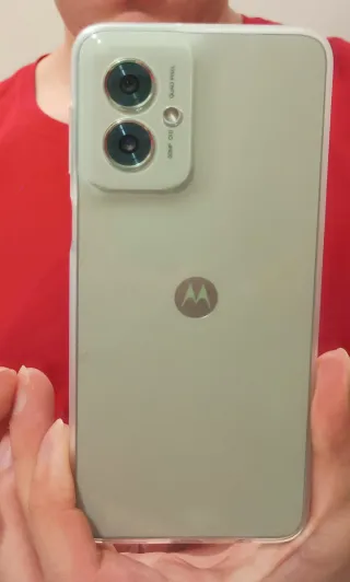 Teléfono móvil Motorola G55 en color verde. - Pantalla de 6.6 pulgadas. - Cámara principal de 50MP. - Batería de 5000 mAh. - Almacenamiento 256GB