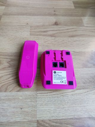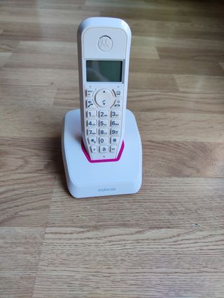 Teléfono inalámbrico para casa en color blanco y rosa. Esta prácticamente nuevo y sin uso. Tiene el cable de luz y de red en perfecto estado.