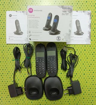 Pack Duo teléfonos Motorola C1002B+ - Dos terminales inalámbricos con sus dos bases de carga. - Sistema de manos libres. - Altavoz. - Funcionamiento correcto. - No contiene baterías (pilas AAA recargables).