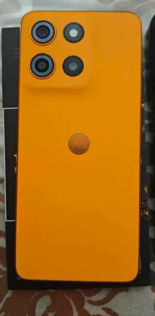 Teléfono móvil Motorola Moto G15 con su caja original y accesorios. Está en perfecto estado (se puede ver y probar, lo entrego reseteado de fábrica) - Caja del Motorola Moto G15 color naranja - Fundas protectoras (una transparente y otra rígida resistente a golpes) - Protector de pantalla de cristal templado (tiene puesto aún uno y entrego dos nuevos) - Entrego cable con el que venía