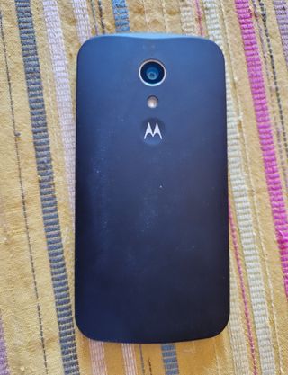 Moto G Pure en color negro y azul oscuro. Diseño con textura en la parte trasera. - Cámara dual trasera. - Pantalla nítida. - Batería de 4000 mAh. - Lector de huellas integrado. - Android versión 12. - 3GB de memoria RAM. - 4G. - No trae caja, pero si el cargador.