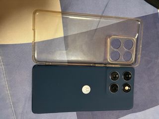 Teléfono móvil Motorola en un atractivo color azul, acompañado de su funda protectora transparente. - Diseño moderno y elegante. - Funda de silicona flexible. -cable original de carga poco tiempo de uso,intacto