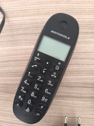 Teléfono fijo inalámbrico marca Motorola incluye el teléfono , soporte cargador, batería y cables, nuevo sin estrenar, 15 euros