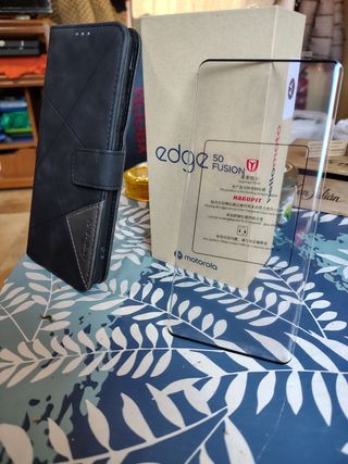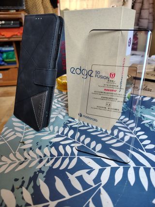 Vendo una funda de móvil y un protector de pantalla de cristal templado para Motorola Edge 50. La funda es de color negro, con un diseño elegante y textura agradable al tacto. El protector está nuevo, sin usar. - Funda tipo cartera, con cierre. - Protector de pantalla de cristal templado. - Compatibleotorola Edge 50.