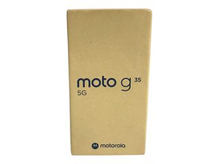 Caja del Motorola Moto G 35. - Logo de Motorola. - Modelo Moto G 35. - Conectividad 5G.