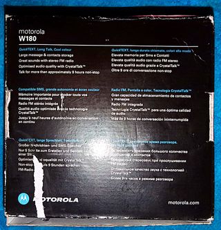 Motorola w180 GENERAL Red GSM 900 / GSM 1800 Anunciado 2007, Octubre Status Disponible TAMAÑO Dimensiones 114 x 43 x 14 mm Peso 85 g DISPLAY Tipo CSTN, 65K colores Tamaño 128 x 128 pixels RINGTONES Tipo Polifónico (32 canales) Cantidad 20 precargados Customización Download Vibración Si MEMORIA Agenda telefónica 500 números Registro de llamadas 10 marcadas, 10 recibidas, 10 perdidas Slot de tarjeta No - 70 KB memoria de usuario - 750 mensajes SMS Velocidad de datos - Mensajería SMS Reloj Si Hay 2 se venden juntos o por separado. Hay 1 caja. Son moviestar ambos. Precio a negociar no hacer caso al precio del anuncio.