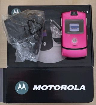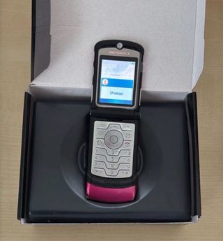Teléfono móvil Motorola V3 Razr en color rosa, completamente nuevo y en su caja original. - Incluye cargador. - Diseño plegable icónico. - garantizar - Sin Simlock - Sin Telefonolock - El teléfono está reacondicionado