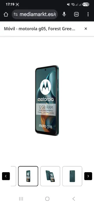 Teléfono móvil Motorola Moto G05 en color Forest Green. - Diseño elegante y moderno. - Marca reconocida por su calidad. - Nuevo precintado, sin abrir. - 4Gb. 128 gb.