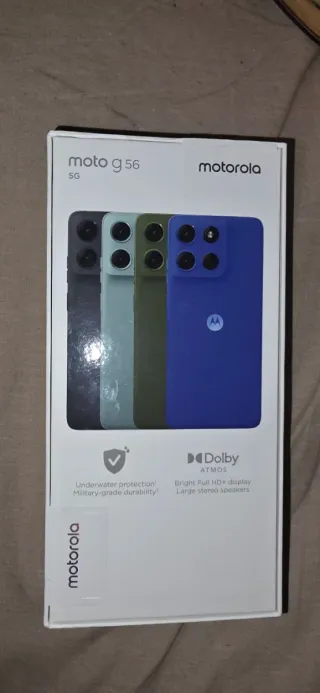 Teléfono móvil Motorola Moto G56 con 256GB de almacenamiento. - Pantalla Full HD+. - Altavoces estéreo. - Protección contra agua. - Durabilidad de grado militar.