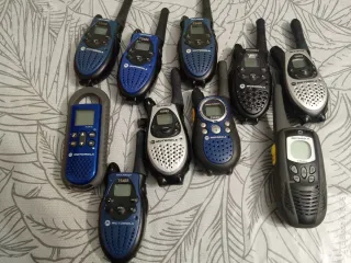 Se vende lote de 10 walkie talkies Motorola de varios modelos. - Modelos incluidos: T5022, T5422, T5622, XTR446., TLKR-T5, - Colores: azul y negro. Funcionando todos funcionan con pilas AA y AAA. 5€ cada uno.