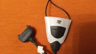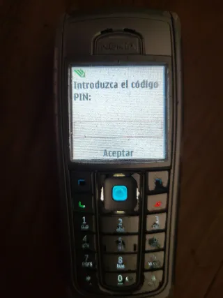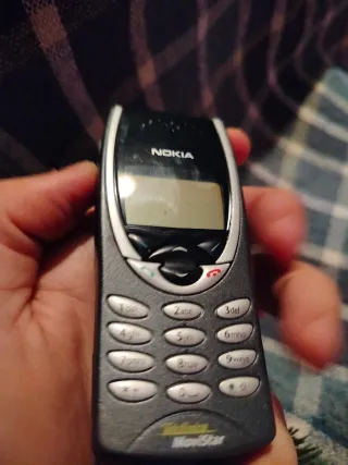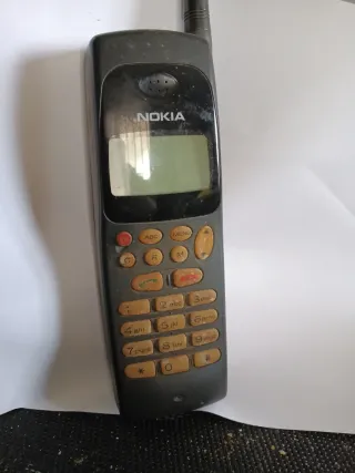 Teléfono móvil Nokia clásico, un modelo icónico de los años 90. - Diseño compacto y robusto. - Teclado numérico físico. - Antena retráctil.