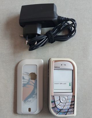 -Teléfono móvil Nokia 7610 en color beige y plata. - Cable Cargador. - Funda protectora.-