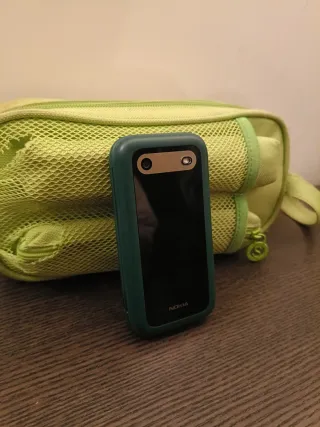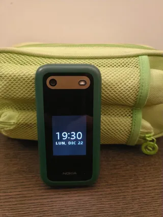 Teléfono móvil Nokia 2660 Flip en color verde. Dispone de conectividad 4G y Dual SIM. - Pantalla a color. - Cámara trasera. - Radio FM. - Linterna. Se vende por no usar, se compró en 2025