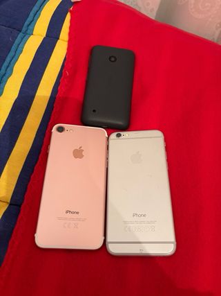 Se vende lote de tres teléfonos móviles. - Un Nokia Lumia negro en funcionamiento. - Dos iPhones para piezas.