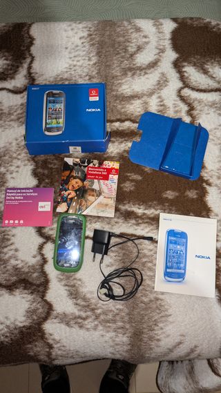 Teléfono móvil Nokia C7-00 en su caja original, listo para usar. Incluye todos los manuales y el cargador. Funciona bien. Está algo usado pero en general está en condiciones bastante buenas - Caja original. - Manual de inicio rápido. - Cargador.