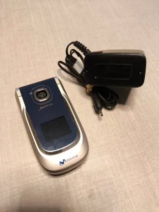 Teléfono móvil tipo concha de la marca Nokia. Un diseño clásico y funcional. - Color azul y plateado. - Incluye cargador.