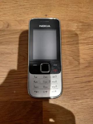 Teléfono móvil Nokia clásico en color negro y plateado. - Diseño compacto y ligero. - Teclado numérico físico.