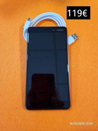 Móvil Nokia 6.1 Dual Sim 32 Gb .Modelo: TA-1043 negro, muy poco usado prácticamente nuevo y sin signos de uso. Funda de piel nueva valorada en 14 euros