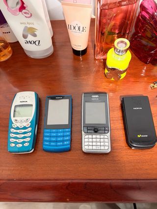 Conjunto de ocho teléfonos móviles Nokia de modelos clásicos. - Diseños variados y reconocibles. - Combinación de colores plateado y azul. Todos funcionaban cuando se dejaron de utilizar. Actualmente algunos no se han podido probar por falta de cargador. Uno de los Nokia plateados no tiene batería. Ideales para coleccionistas, personas mayores o recambios. Mejor se vende todo el lote junto, no se separado. Entrega en mano o envío por Wallapop.