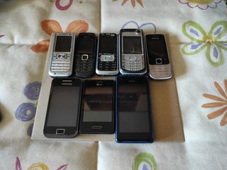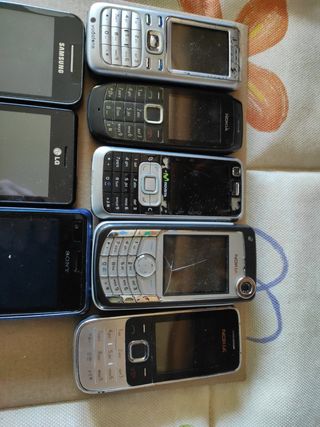 Sony Xperia, Samsung M12 y Nokia, el Samsung tiene la cámara rota, por lo demás los teléfonos se dejaron de usar por obsoletos, cargan y encienden