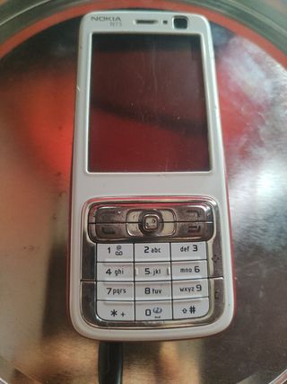 Teléfono móvil Nokia N70 en color plata y beige. - Diseño clásico y compacto. - Pantalla a color. - Teclado numérico. - con cargador original.