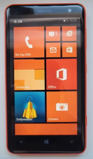 Teléfono móvil Nokia Lumia 625 en llamativo color naranja. Un dispositivo con un diseño moderno y una pantalla grande. - Pantalla de 4.7 pulgadas. - Cámara trasera de 5 MP y cámara frontal VGA. - Procesador Dual-core 1.2 GHz. - Sistema operativo Windows Phone 8.1 - 512MB de RAM. - 8GB de almacenamiento interno expandibles a 64GB adicionales mediante microSD. - Batería de 2000mAh. La pantalla está inpecable. Tiene la carcasa trasera un poco agrietada pero se venden repuestos.