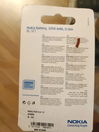 Batería de repuesto para teléfonos Nokia. - Modelo: BL-5CT - Voltaje: 3.7V - Compatible con Nokia 5220 XpressMusic y otros modelos.