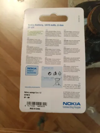 Batería de repuesto para teléfonos Nokia. - Modelo BP-6M. - Voltaje 800 1.7V.