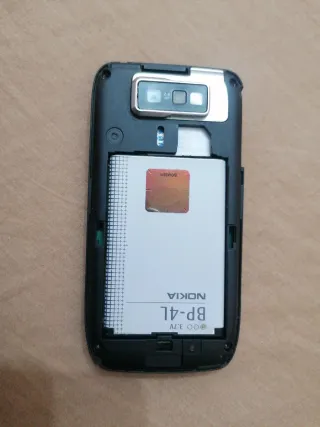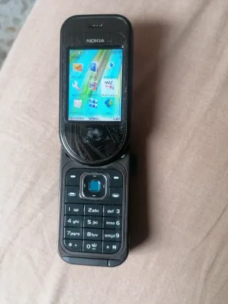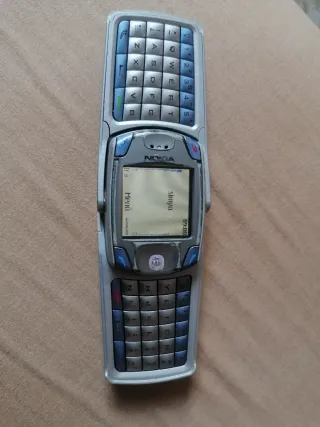 Teléfono móvil Nokia para coleccionistas. Un modelo clásico con diseño deslizante. - Teclado QWERTY completo. - Pantalla a color. - Diseño plateado y azul.