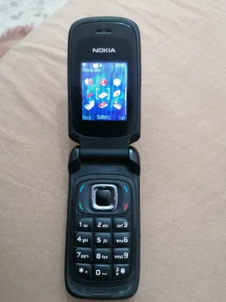 Teléfono móvil Nokia tipo flip en color negro. Un clásico para coleccionistas o para quienes buscan un dispositivo sencillo. - Diseño plegable. - Teclado numérico completo.