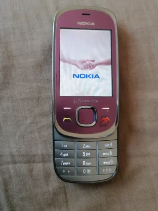 Teléfono móvil Nokia en color rosa, ideal para coleccionistas. - Diseño clásico y compacto. - Acabado metálico en el borde.