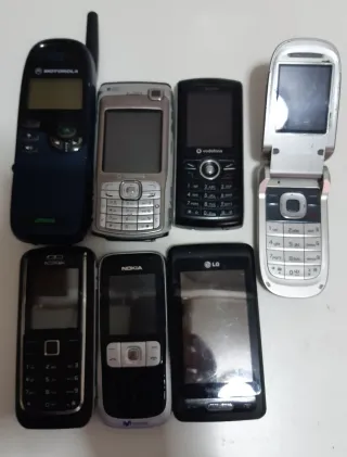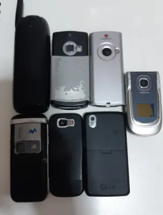 Conjunto de siete teléfonos móviles antiguos, una mezcla de marcas y modelos. * Incluye dispositivos de las marcas Nokia y LG. ( procedentes de reciclaje ) # Para coleccionistas, piezas o quien sepa arreglarlos. * Hago envío por Wallapop y milanuncios. * GASTOS de envío APARTE del precio de venta. # NO SE ADMITE DEVOLUCIÓN #