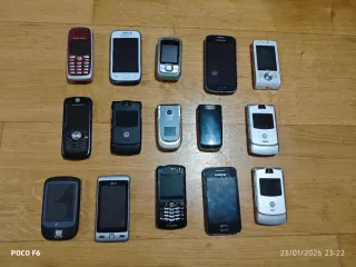 Vendo lote de 33 teléfonos móviles clásicos de los años 2000. Una mezcla increíble de modelos icónicos, ideal para coleccionistas o para piezas. Lo más destacado del lote: 3x Motorola RAZR V3 (Iconos de aluminio). Nokia 6310i (Muy buscado para Mercedes/BMW clásicos). Modelos raros: NEC i-mode, LG Chocolate y Sony Ericsson Walkman/Cyber-shot. Varios Nokia, Samsung, LG y HTC adicionales. Estado: Se venden SIN PROBAR (solo incluyo algunos cargadores y baterías, algunos los he encendido y funcionan). Se asumen para piezas, reparación o exposición. No se aceptan devoluciones. Condiciones: Solo vendo el lote completo en principio. Envío