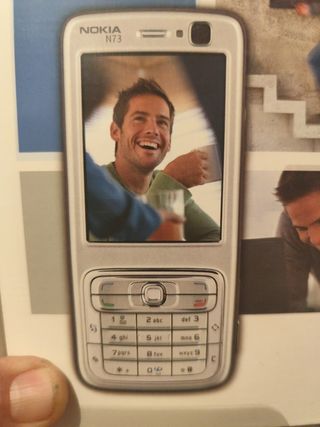 Teléfono móvil Nokia N73 en color gris plata. Se encuentra en su embalaje original y parece estar en buen estado. - Modelo Nokia N73. - Color gris plata.