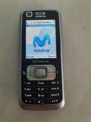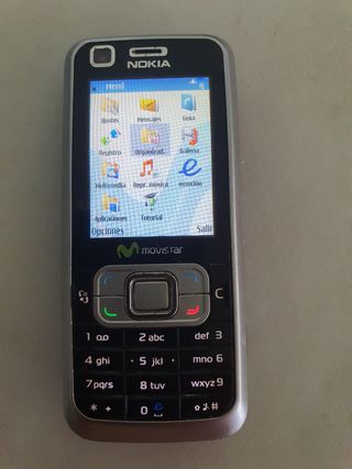 Teléfono móvil Nokia 6120C-1 en color gris plata. Se encuentra en buen estado. - Modelo Nokia 6120C-1. - Funciona con tarjeta SIM Movistar (se muestra en la imagen).