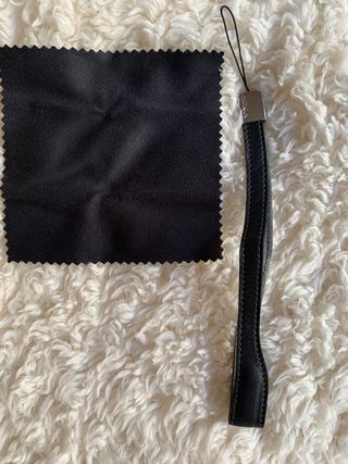 Correa de mano para móvil, en piel acolchada, color negro . Incluye gamuza limpia pantalla. Nueva a estrenar!! ( diferentes usos: bolso , cartera ,etc )