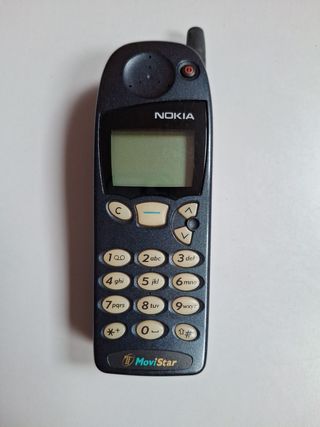 Teléfono móvil Nokia 5110 en buen estado. Incluye cargador original y dos carcasas, una nueva. Teléfono icónico. Aguanta más de media hora de conversación. Incluye varios juegos, entre ellos el mítico Serpiente. Cuidado, sigue siendo adictivo...