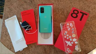 Teléfono móvil OnePlus 8T de gran capacidad y muy rápido: 12GB y 256GB, en color verde. Está en buen estado. Usándose hasta hace un mes, se dejó de usar por cambio de móvil. Se entrega en su caja original - Pantalla de 120 Hz.. - Funda protectora transparente incluida con pegatinas que se pueden quitar. - Se incluye un cargador no original.